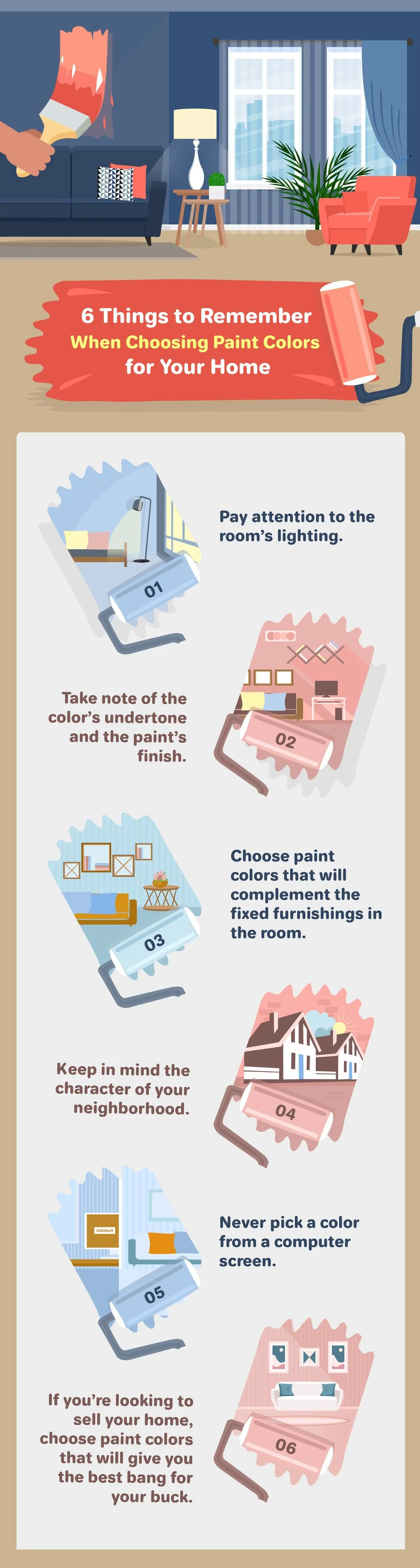 In 2019, we bid farewell to Ultra Violet and say hello to Living Coral as the Pantone Color of the Year. But don't just go straight to the paint store to buy several cans of this coral hue. Choosing the perfect color for your home can be tricky and formula guides and color swatches won’t be helpful if you don’t take into consideration some factors involved in your home.